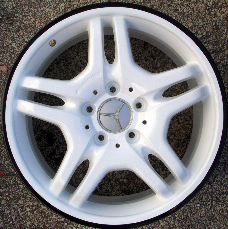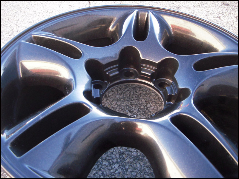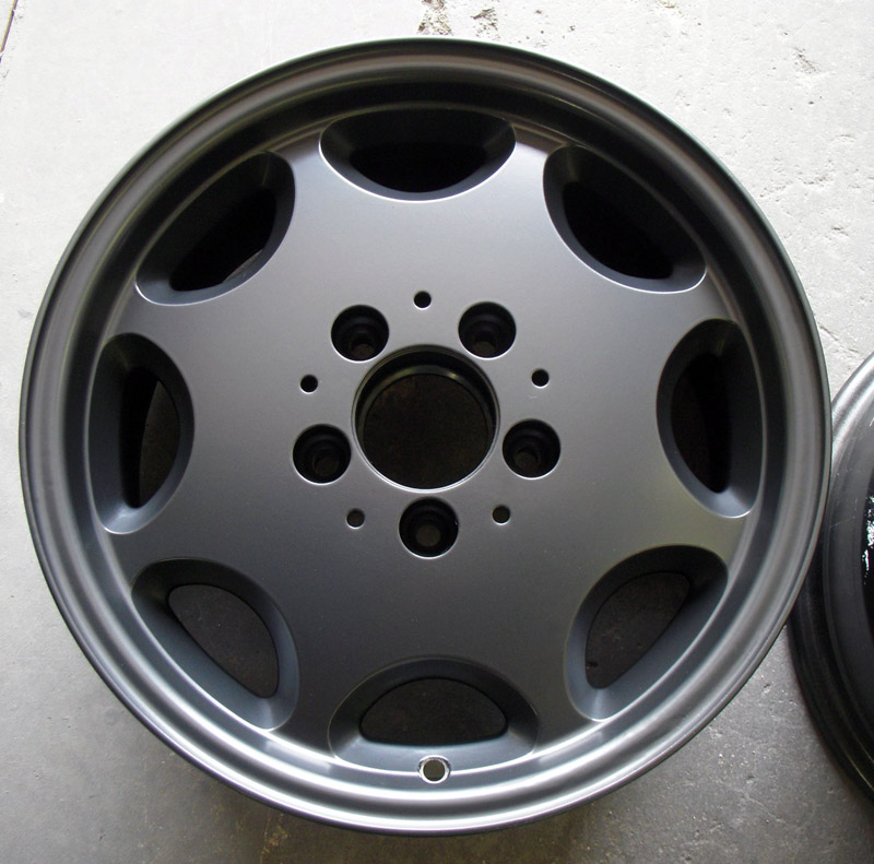 When we powder coat a wheel we strip off all the old coating, sand blast the wheel, repair any curb damage to the rim, chemically clean and etch the alloy wheel, and then begin applying our powder coat. We have even more detail on our Rim Refinishing page if you are curious. We consider powder coating a wheel the same as rim refinishing.